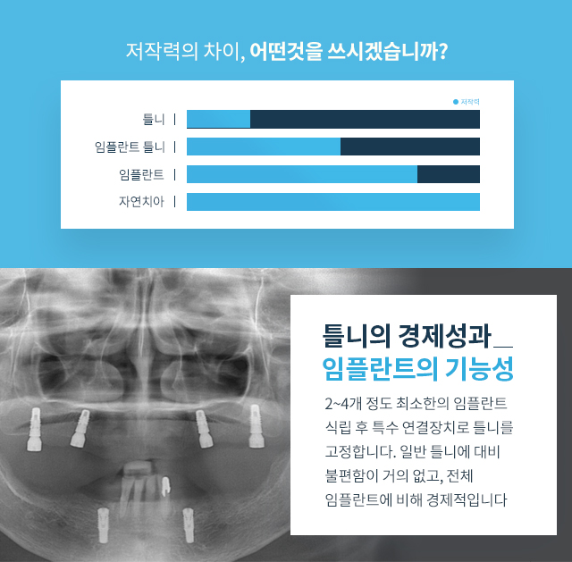 틀니의 단점을 보완하면서 편의성을 높일수 있습니다.
