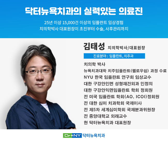 김태성 대표원장님은 뉴욕대 치과대학에서 치주 임플란트과 수료경력 과정을 수료한